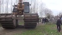 Une pelleteuse amphibie se retourne dans l'eau