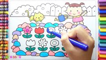 How to Drawing Baby Girl and Gardens Colorful for Children - Coloring Pages Videos For Kids