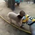 Maymun ağmayı yolun karşısına geçiriyor