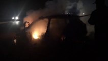 نجاة شخصين بعد انقلاب سيارتهما واشتعال النيران بها على طريق العلمين