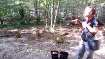 Sofia nourrit les Macaques de Terre de Singes