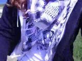 Pauline dans les vestiaires entrain de faire le grand écart.