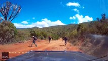 Traverser un essaim de criquets en voiture (Kazakhstan)
