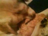 Mon chat Noisette fait semblant d'attaquer mon lapin Kawouette mais chaque fois que le lapin s'approche elle se cache deriere le muret ! désolé pour la qualité c'est mon portable.