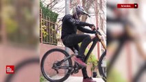 Adrenalin tutkunu genç, İstanbul’un merdivenlerini bisiklet parkuruna çevirdi
