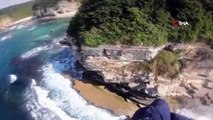 DÜZCE - Akçakoca'da denize girmek için azgın dalgaların dövdüğü sarp kayalara tırmanan ve mahsur kalan bir kişi, jet ski yardımıyla kurtarıldı. O anlar kameralara yansıdı.
