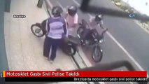 Brezilya'da duran trafikte yanaştıkları otomobilden gasp yapmak isteyen 2 kişi, sürücünün sivil polis olduğundan habersizdi. Durumu fark eden polis ise hemen silahını çekip ateşledi. Kurşunların hedefi olan soygunculardan biri koşarak kaçarken, biraz ileride yere yığıldı. Motosikletteki kişinin de akıbeti aynı oldu.