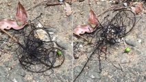 Le 29 août 2017 cette taïwanaise a découvert une créature mystérieuse sur le sol. Il s'agit en fait d'une nématomorphes.