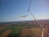Hang glider turning in rising air (thermals) in order to gain altitude. The beeping means we're going up. The faster the beeping the faster the ascent.