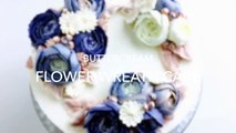 HOT CAKE TRENDS 2016 Buttercream Blue Roses Wreath cake - How to make by Olga Zaytseva