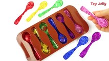 How To Make DIY Rainbow Glitter Gummy Jelly Spoon Pudding Recipe Finger Family Song Nursery Rhymes