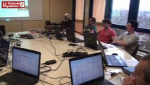 La journée mécanisation 2017 de la FD CUMA Aveyron a accueilli près de 500 personnes le jeudi 14 septembre à St-Julien de Rodelle. Après le forum-débat de la matinée, le public composé d'éleveurs et de lycéens agricoles a assisté l'après-midi à plusieurs démonstrations de matériels pour les travaux d'épandages de fumier et lisier, avec par exemple, une tonne à lisier équipée d'une rampe à patins, un outil rare dans la région, qui diffuse le lisier au plus près des racines. Les explications techniques de Sylvain Saunal, conseiller machinisme à la FD CUMA du Tarn, invité par ses collègues aveyronnais.