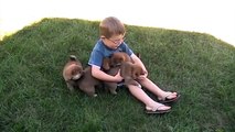 A boy hugging with a little Shiba Inu