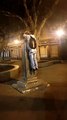 Jovem sobe em busto de Aleijadinho e depreda escultura