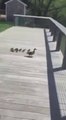 Des canetons sautent à l'eau pour la première fois