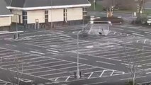 Video has emerged of a man trying to test the strength of Storm Ophelia's wind in Ireland's County Laois using a parachute-like device.