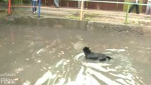 Hund von Überschwemmungen gerettet
