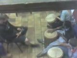 C'est un instrument de percussion africain composé d'une pièce de bois en forme de calice recouvert d'une peau de chèvre ou d'antilope et d'un système de tension (corde, anneaux métalliques) que l'on joue à mains nues et dont le spectre sonore très large génère une grande richesse de timbre. La forme évasée du fût viendrait de celle du mortier à piler le grain. Il vient de l'Empire Mandingue (Afrique de l'Ouest), mis en place par Sundjata Keïta au XIIIe siècle, qui s'étendait de la Guinée à l'est du Mali, et au nord de la Côte d'Ivoire en passant par le Burkina Faso. C'est dans les années 1950 que le djembé commence à s'exporter en dehors de l'Afrique, grâce à Fodéba Keita et les ballets africains puis grâce à la Guinée et son président Sekou Touré, qui érigea le ballet national de la république comme vitrine de son régime. C'est dans les années 1980 que le djembé conquit le monde, grâce à de grands djembefola (joueurs) issus des ballets nationaux (Mamady Keïta, le plus connu d'entre eux, mais aussi Amadou Kiénou, Famoudou Konaté, François Dembélé, Adama Dramé, etc.) qui jouent régulièrement et ont fondé des centres d'apprentissage, en Europe, aux États-Unis et au Japon. (sources WIKIPEDIA)
