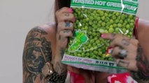 KARMEN KARMA tries Roasted Hot Green Peas - SNAXXX