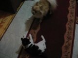 Chat qui ne comprend pas qu'il doit manger la souris