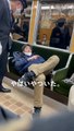 電車内で寝そべるDQN迷惑男と注意する勇敢な車掌