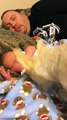 The owner proceeds to hold up a wad of devastated and discarded tissue paper, having been ravaged by the sharp teeth of what looks to be one canine—until another canine enters the picture.