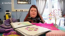 Quadriplegic woman knits with her mouth