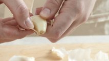 How to prepare: There’s no need to wash garlic, just peel and trim the ends off the clove and you are ready to go! To easily remove the skin from the garlic, place the clove under the flat side of a chef knife and give it a whack with the base of your hand. The pressure will crack open and slightly flatten the clove, making the papery skin pop off. This action also makes it easier to slice and mince the peeled garlic. Depending on what you are making, you can prepare your garlic in a variety of ways: leave it whole, roast the entire bulb, mince, grate, press, slice or mash into a paste.