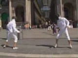Pazzi a duello di scherma in piazza Duomo a Milano