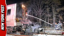 LIRR train crashes into vehicle in fiery wreck