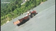 Tractor driver is swept away whilst crossing overflowing river