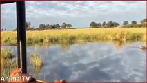 Crocodile Attack the lion! Crossing the Lion Brother, the Crocodile is turning away.