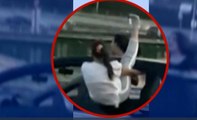 Yanından geçen arabalara dahi aldırmayan şahıs, dakikalarca genç kızı darp etti. Genç kız aldığı sert darbeler nedeniyle acı içinde defalarca çığlık attı. Ağlayarak araçtan inen kadın ise kendisini darp eden gençle konuşmaya çalıştı. Arabanın içinde tekme ve yumruklara maruz kalan kadının burnunun kanadığı görüldü. Daha sonra kamerayı fark eden adam, kızı da araca bindirerek oradan hızla uzaklaştı. Haber