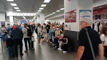 Aeroporto di Bergamo, la lunga coda di passeggeri in attesa dopo l'incidente sulla pista