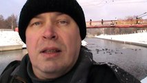 Мужик Геннадий Горин на берегу гуляет зима, река Орлик, город Орёл
