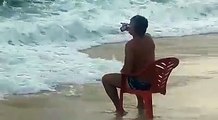 man compilation under wave