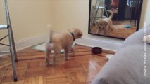Ce chiot n’a toujours pas compris le principe d'un miroir