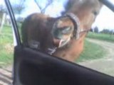 Calinka qui leche la voiture