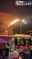 Un dingue s'amuse avec un lance-flamme sur le toit d'un bus en plein New York