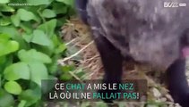 Un chat piégé dans une toile d'araignée