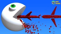 Learn Colors with 3D Airplanes shape and Funny Pacman