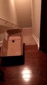 Guy tricks cat into sliding down stairs in box | ORIGINAL