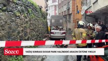 Kağıthane’de yağış sonrası duvar park halindeki aracın üstüne yıkıldı