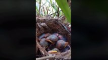 Mother bird secretly feeds it's newborn baby bird