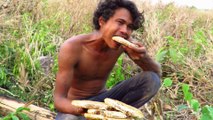 Primitive Technology - shoot cobra snake by catapult - cooking wild snake eating delicious