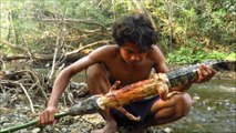 Primitive Technology - Find Crocodile by Spear in river - cooking Crocodile eating delicious