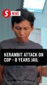Man gets eight years jail, caning for attempted murder of police inspector
