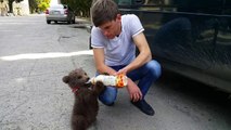 A este osito le encanta que le den el biberón