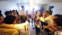 La joie du vestiaire après la victoire de U15A