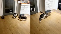 The web belonged to a Redback spider who made a run straight for the Huntsman. The wasp managed to break free quickly by flapping its wings.